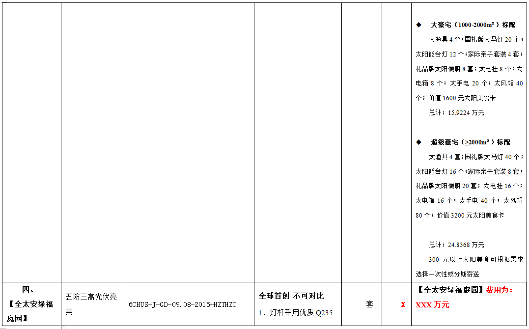 包括高標反滲透凈水系統 個,太陽烤炫微廚 個,太陽美食卡 套